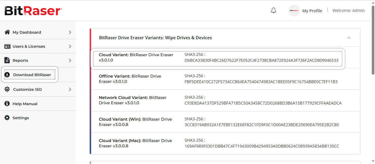 - Step 1: Download the BitRaser Drive Eraser ISO file from the BitRaser Cloud console using the credentials delivered via e-mail post-purchase. (Refer to Image 2)